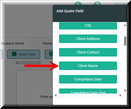This will open the Add Quote Field window where we are going to select Client Name from the list.