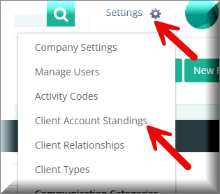 From the Settings Menu click on "Client Account Standings"