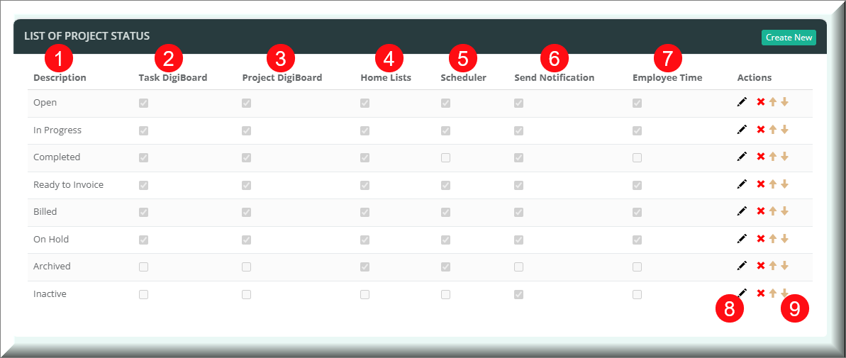- When this is checked a Task with this status can have Employee Time applied. This is very helpful to prevent employees from charging time to completed and billed projects.