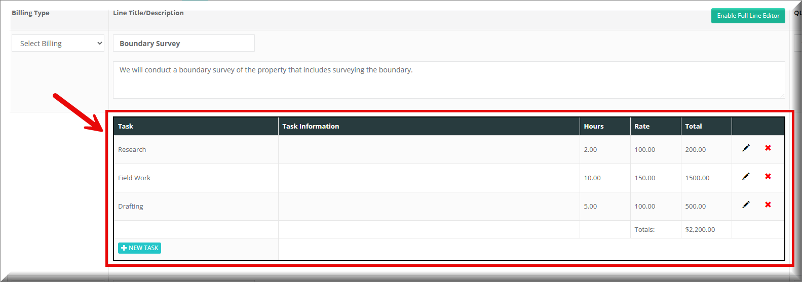 By associating your Quote Tasks to Quote Line Items it allows you to have multiple Field Work tasks for one project but knowing what task belongs to what type of work. Such as House Stakeout - Field Work vs House Final Survey - Field Work. It allows you to keep like tasks separated.